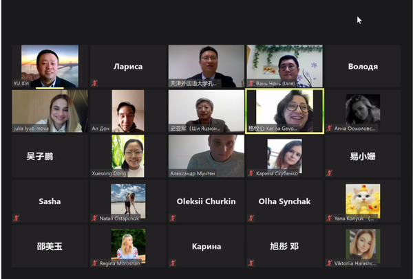 我校国际合作与交流处、孔子学院工作处处长张占奇,欧洲语言文化学院党委书记安娜,副院长史亚军、刘全,乌克兰研究中心主任钟晓雯,乌克兰基辅国立语言大学孔子学院中方院长于鑫、乌方院长尤莉娅·柳彼莫娃,乌克兰基辅国立语言大学斯拉夫语系主任、我校乌克兰语专业外教亚历山大·穆天,项目负责人、欧洲语言文化学院乌克兰语专业负责人王晨,以及乌克兰基辅国立语言大学孔子学院教师代表,我校和乌克兰基辅国立语言大学学生代表等相聚云端,共同参加本次开营仪式,开启感受中国文化、体验魅力天津的线上之旅。