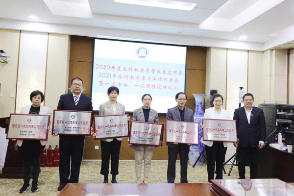 为贯彻落实教育部、市教委2021年工作要点,进一步提高我校本科教育教学工作质量和水平,4月22日,我校召开2020年度本科教学质量报告发布会、2021年本科教学重点工作部署会暨一流专业、一流课程授牌仪式。校党委书记殷奇,校党委副书记、校长陈法春,副校长余江出席会议,本科教学单位院长、教学副院长,国家级、省级一流专业建设点负责人,国家级、市级一流建设课程负责人,校督导专家、教学秘书及教师代表参会。会议由教务处处长刘建喜主持。