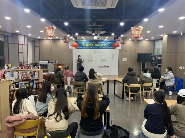 十一月的韩国,冬意渐浓,寒气日增,而顺天乡大学孔子学院(以下简称“孔院”)活动室却人气不减,热闹非凡。11月2日至23日期间,每周二晚上的“华风汉艺”系列活动如期举行,参与本次活动的中韩师生达100余人次。尽管受疫情影响,对活动人数做了一定的限制,强化了防疫措施,但活动氛围却不减往年。