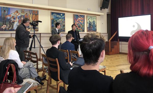上半场讲座中,德布勒森大学放射科医生马事诚博士以“茶与中医”为题,从茶的历史、中医原理、茶的中医属性和日常生活中的饮茶四个方面作了介绍。德布勒森大学荷兰学系普资塔依﹒加博尔博士以“茶和荷兰不列颠东印度公司”为题,着重介绍了茶在荷兰的出现和普及历史。德布勒森大学孔子学院赵川兵博士介绍了汉语中“茶”字字形、语义和语音的演变情况,并回答了马事诚博士的提问;王在军老师以中国传统文化中的“阴阳观念”为核心,以“禅茶一味”为题,分析了“一阴一阳谓之道”这一理念在“茶道”中的体现。 普资塔依.加博尔博士讲座 王在军老师禅茶一味讲座