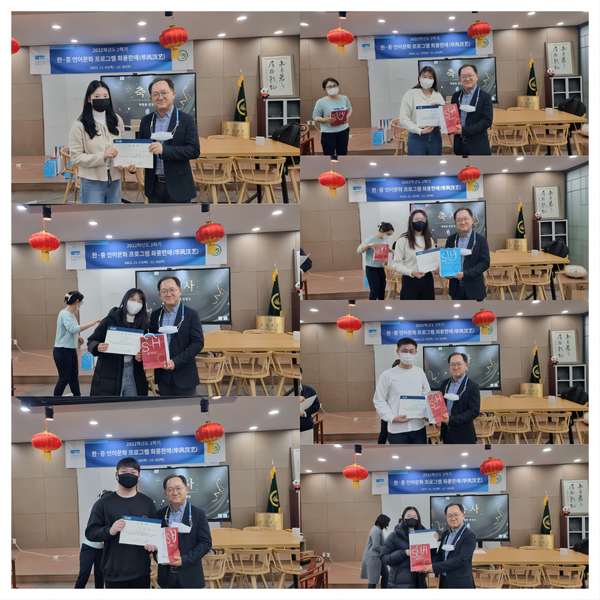 12月1日,孔子学院“华风汉艺”系列活动结营仪式及颁奖典礼顺利举行。结营仪式由顺天乡大学孔子学院朴炯春院长致闭幕词。他指出,“华风汉艺”语言文化系列活动以多样的形式和丰富的内容展开,旨在为中韩学生提供一个语言与文化交流互鉴的良好平台。活动的举办也是为了促进两国青年密切交往,希望两国青年成为维系中韩友谊的纽带,共同创造中韩美好的未来。朴炯春为本次活动中表现优异的学生颁奖。