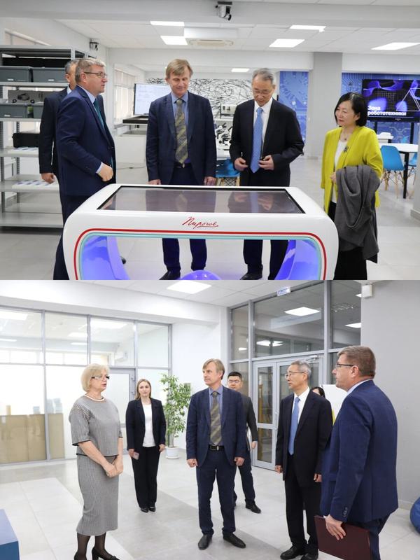 在伏师大校长科罗特科夫教授、副校长格拉佐夫教授、伏师大孔子学院中方院长宁怀颖以及随行人员的陪同下,曹士海参观了伏师大科技馆和物理研究中心,了解了学校在科学研究和技术创新方面的发展。