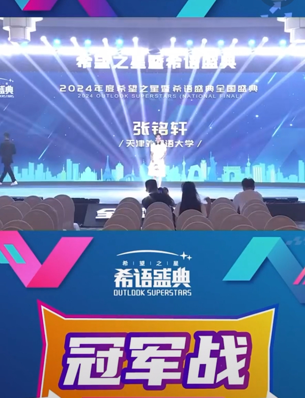 8月12日,由中国关心下一代工作委员会健康体育发展中心与希语汇国际教育共同承办的2024年度希望之星暨希语盛典全国冠军赛在北京落下帷幕。MK平台国际传媒学院2023级新闻传播学专业学生张铭轩逐级突围,晋级到全国盛典冠军争夺战,与来自上海外国语大学、集美大学等4名选手同台竞技,最终以352分的优异成绩夺得全国总冠军。这也是大赛自1999年创办至今,天津取得的最好成绩。