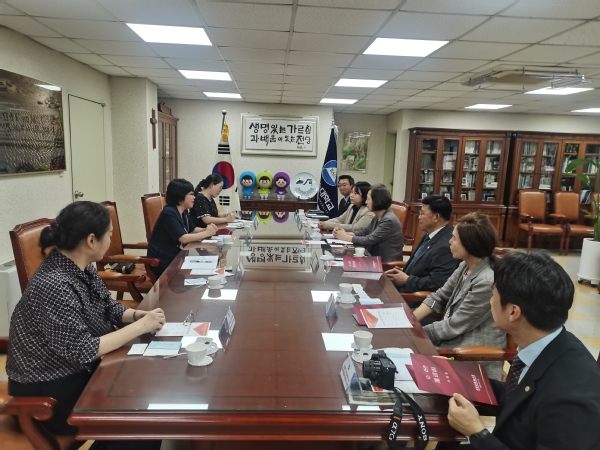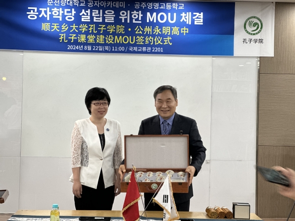 代表团还会见了忠清南道公州市永明高中代表团,听取了永明高中情况介绍,并见证了顺天乡大学孔子学院与永明高中签署新设孔子课堂合作意向书。