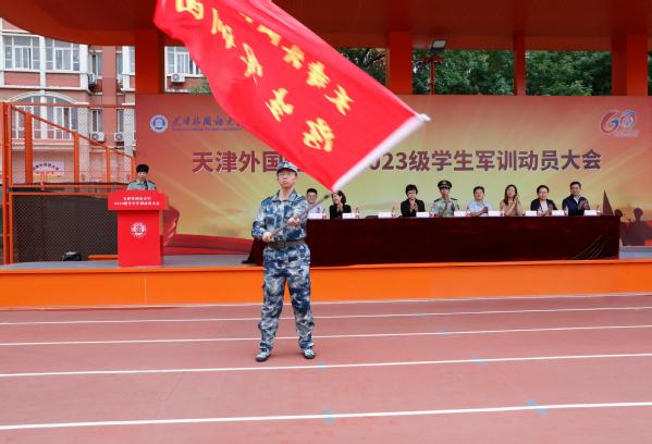 英语学院学生于清涵和国际商学院学生冯思思代表2023级全体参训学员发言并作出庄严承诺,在接下来的21天训练中,要坚决服从命令、听从指挥;尊重教官、团结同学;严守纪律、遵守规章;吃苦耐劳、勤学苦练,以优异的训练成绩践行自己的责任与担当。