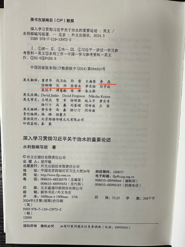 近日,水利部组织编写的《深入学习贯彻习近平关于治水的重要论述》一书英文版由外文出版社正式出版发行。MK平台高级翻译学院李晶院长受邀,带领三名硕士毕业生深度参与本书的翻译工作。