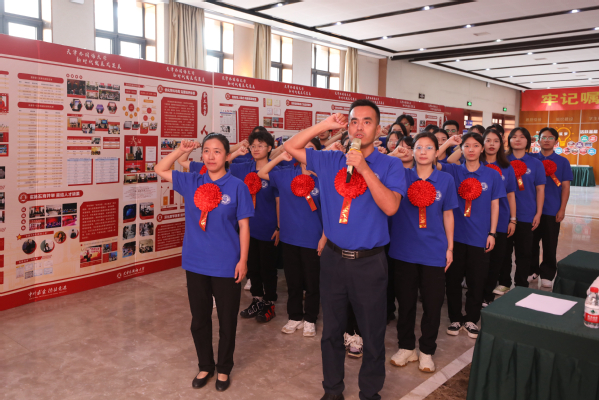 在支教团两位带队教师的带领下,支教团全体成员庄重宣誓,铿锵有力地喊出青春无悔、情洒边疆的豪言壮语,立志使命必达!