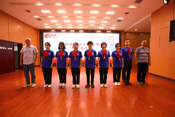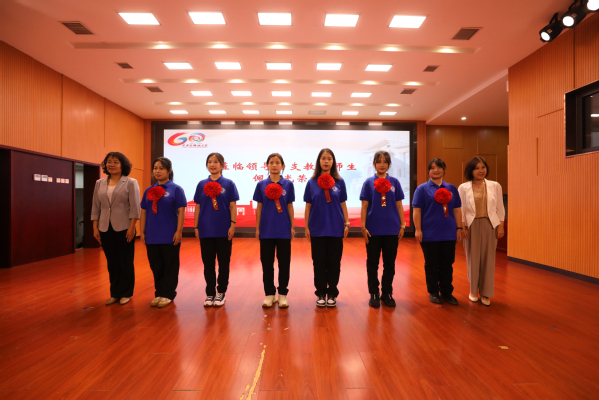 在热烈的掌声中,各学院领导为支教团师生佩戴光荣花。红花胸前戴,光荣随疆行。支教团成员必将不负众望,凯旋而归!