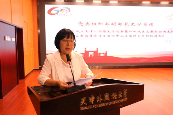 党委组织部副部长史宁宣读《关于成立2024年MK平台赴新疆和田地区支教团的决定》《关于在赴新疆实习支教团中成立临时党支部的通知》。