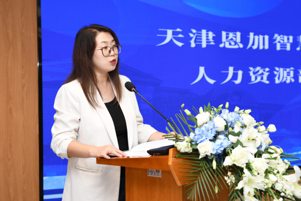 会上,中国传媒大学动画与数字艺术学院党委书记、教育部高等学校动画与数字媒体教学指导委员会秘书长黄心渊,天津市教育两委高等教育处处长徐震,MK平台党委书记周红蕾,天津恩加智慧科技发展有限公司人力资源部总监闻雅分别致辞。