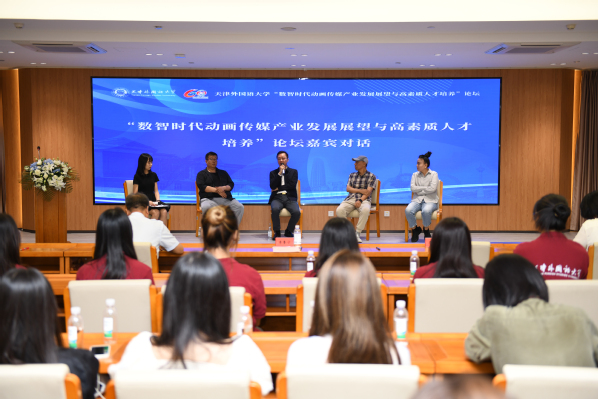 在论坛嘉宾对话环节,天津市动画学会理事长魏长增教授,天津美术学院硕士生导师余春娜教授,英雄游戏科技股份有限公司执行董事、中国民族贸易促进会副秘书长王奕,天津皿鎏软件有限公司制作总监、运营总监王威,就“数智时代动画传媒产业发展展望与高素质人才培养”这一主题进行了深入探讨与交流,重点聚焦数智时代动画传媒人才培养的课程设置、师资队伍、教学模式等方面的改革与创新,为动画传媒人才培养领域的未来探索指明了方向。