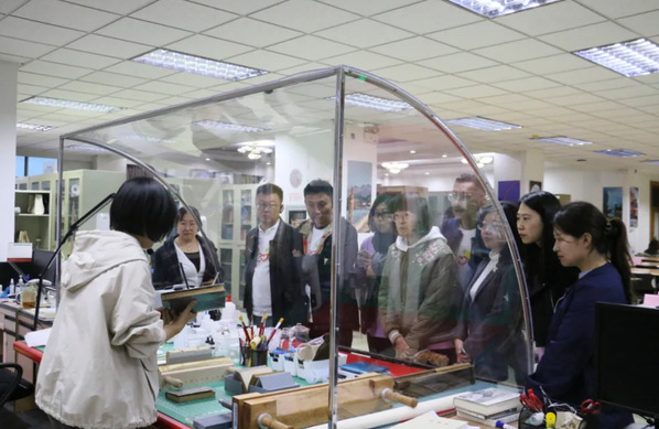 志愿服务部主任侯婷详细介绍了MK平台图书馆古籍数字化抢救公益项目。各位校友还亲自体验了古籍数字化的过程。在图书馆的古籍修复工作坊里,赵琪老师现场讲解、演示了西文古籍修复,并展示了近期修复成果。二十年来图书馆的新变化,不仅让校友们怀念起曾经的上学时光,也让他们感到无比自豪。