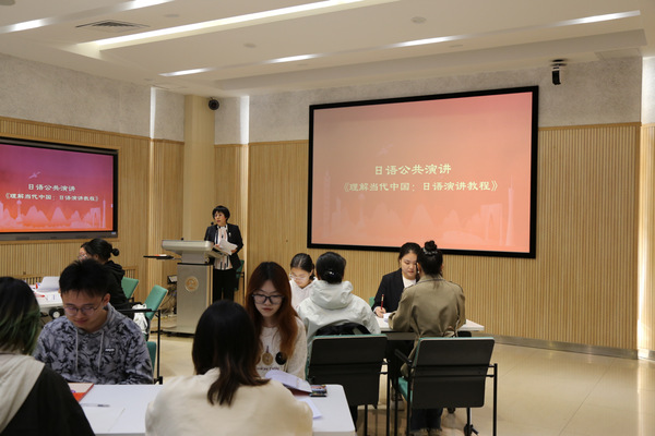 在教学示范环节中,天外日语学院副教授初相娟进行了实景教学展示。她以《理解当代中国:日语演讲教程》第三单元为例,围绕教学内容、教学方法、课程实施等环节,运用大量具有时代特征的实例讲解了演讲策略、分享了教学方法。教研活动第二阶段,由日语学院副院长沈霞副教授主持。