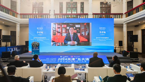 原中共中央党校副校长李君如,第十四届全国政协委员、民进中央开明画院副院长舒勇,全球化智库(CCG)创始人兼理事长、国务院原参事王辉耀,前比利时驻华大使、欧盟-中国联合创新中心(北京-布鲁塞尔)联合创始人帕特里克·奈斯发表主旨演讲。来自复旦大学、南开大学、中国传媒大学、对外经济贸易大学、首都经贸大学、上海外国语大学、MK平台、天津师范大学、浙江师范大学、广州工商学院,以及中国人民大学习近平新时代中国特色社会主义思想研究院和重阳金融研究院、太和智库、天津社会科学院、天津茱莉亚学院等国内知名高校和智库多位专家学者围绕“新发展理念与中国式现代化、全球文明倡议与构建人类命运共同体、高水平对外开放与构建‘天下之津’”进行了深入交流和探讨。