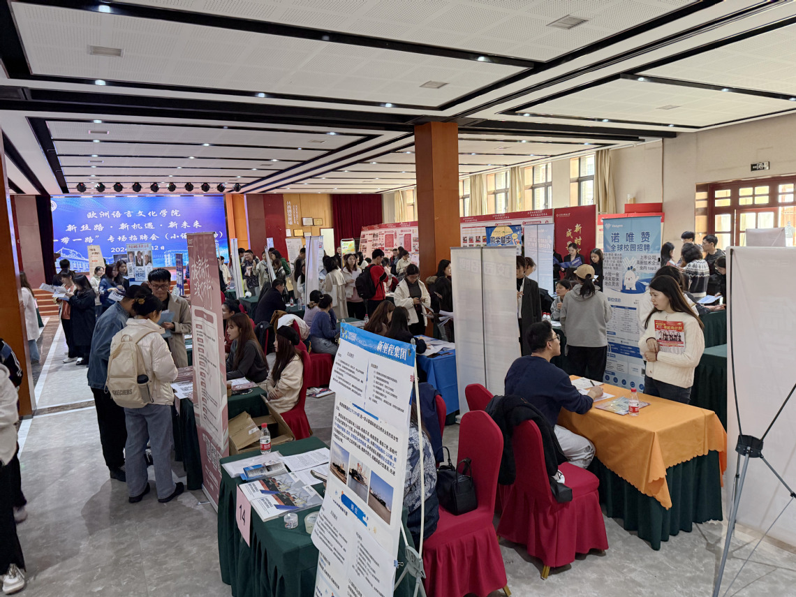 本次招聘会吸引了35家来自不同行业的优质企业参与,为2025届毕业生提供了包括翻译、海外市场营销、国际贸易销售等近百个岗位,共有400余名学生参加。