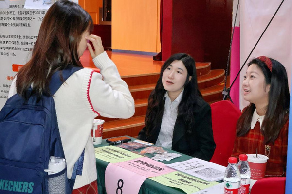参会企业耐心解答了学生们关于岗位职责、薪资福利、职业发展路径等方面的问题,帮助学生们准确把握职场动态,做出适合自己的职业选择。其中,新通教育为学生们提供了包括境外升学咨询、简历优化、职业生涯规划在内的全方位多元化服务。