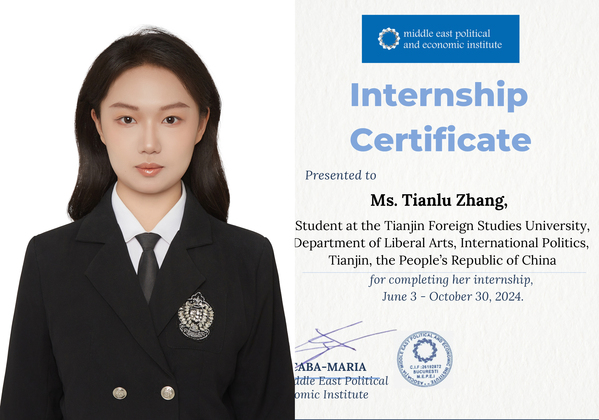 实习内容:在中东政治经济研究所实习期间,就中东、北非和东非国家及其与欧盟、中国和其他金砖国家关系等开展涉及政治、经济、人权、能源等领域的学术研究并进行论文撰写,为该组织官网发布的研究内容提供相关素材。