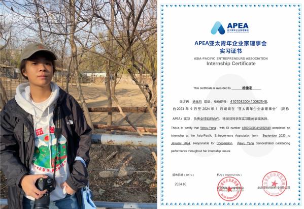 她说:“通过在国际组织实习,我对国际组织架构和运作路径有了更深刻的认知,见证了亚太地区的企业发展和科技创新,提升了自身团队合作能力和领导能力。”
