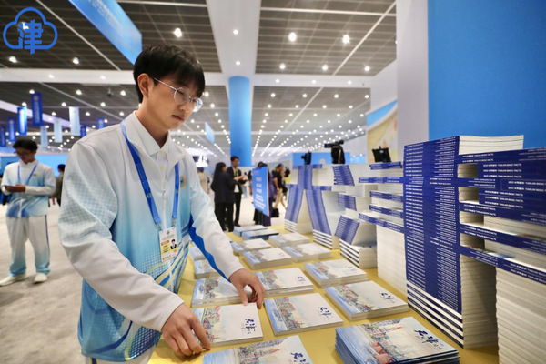 几十米外的邮局点位内,这本小册子又被赋予了满满的上合记忆。在这里,各国记者可以体验大龙邮票一分银、三分银、五分银面值邮票的原样拓印,还可以集章、集邮票,留下自己与上合的独家回忆。天津大学管理与经济学部学生何思佳介绍:“我们有8个关于天津风貌和美食的纪念章,很多记者朋友会选择在《天津概览》这本宣传册上集章,并盖上日戳,日戳上面印有梅江会展中心的图案和当天的日期,大家都感到这是非常具有纪念意义的。”