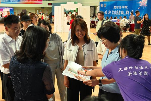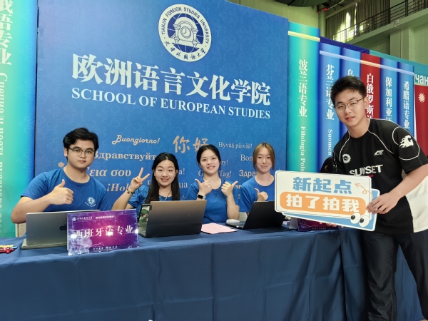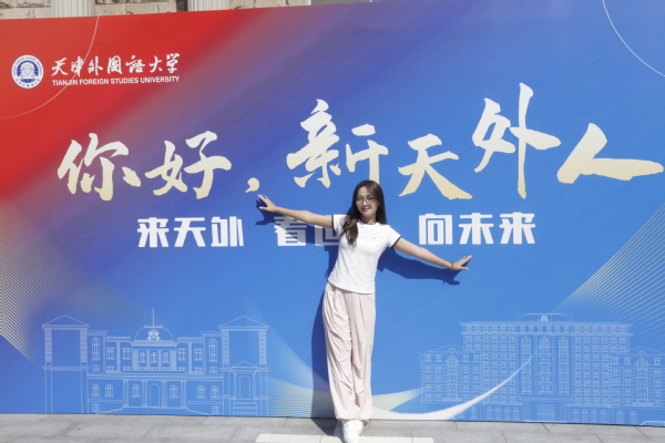 走进校园,红色的展板、蓝色的道旗分外醒目。"TFSU"中珍藏着全体新生的名字,既体现了学校外语特色,又寄托了对新生们的美好祝愿。新生和家长兴奋地寻找自己的名字并合影留念,这张充满温度的“新生名单”成为了受欢迎的“打卡点”,让新生们从踏入校门的第一刻起,就感受到学校的归属感。