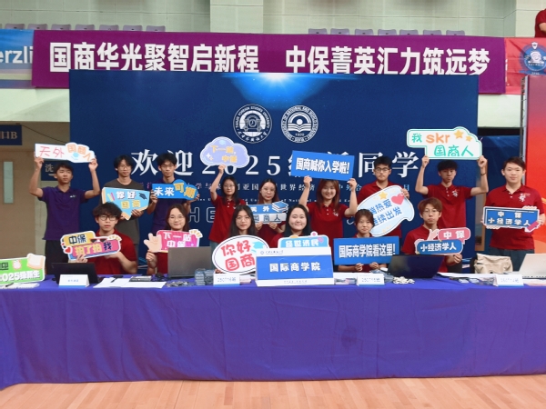 国际商学院为中保专业的同学精心准备了“入学礼”——印有中保青年的文化衫、镌刻院徽的定制钥匙扣、承载期许的环保帆布包。学院还为九月过生日的同学举办了集体庆生会,当全场齐唱生日歌时,初见的拘谨化作青春的欢腾,让“中保人”的身份认同悄然生根。心愿墙上,新中保人的憧憬铺展成璀璨星河:“成为行业领航者”“用专业回馈社会”“与中保共成长”……字句间跃动的是新一代商科学子的凌云壮志!