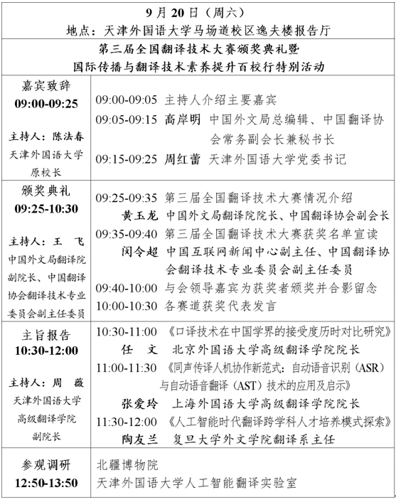 欲获取详细议程,敬请参考【详细议程】第三届全国翻译技术大赛颁奖典礼暨国际传播与翻译技术素养提升百校行特别活动。