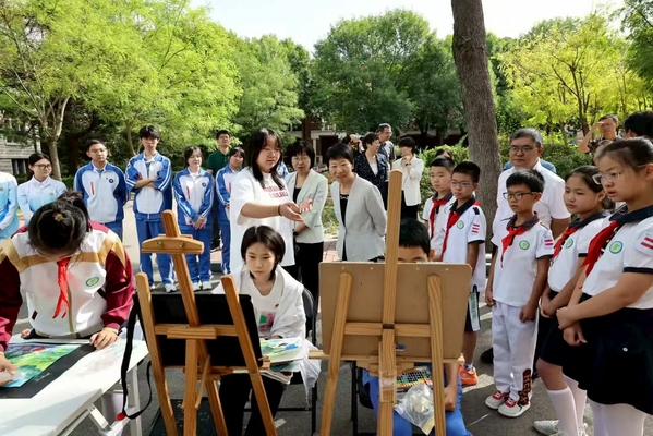 “生态校园里的开学课”——生态环境科普月活动现场异彩纷呈。天津市生态环境科学研究院生态学博士刘红磊为大中小学生们讲解皂角树等校园特色植物科普知识,天津市环境检测公司高级工程师李莹对天外滨海校区映青湖的水进行现场检测,揭秘水质优劣,同学们边看边学,亲身体验生态奥秘。大中小学生共同参与的“美丽校园”主题画展色彩斑斓,充满想象,生动传递了珍惜资源、保护环境的绿色理念。在中外制度比较思政课实验室生态文明比较厅里,一个个鲜活的中外生态治理案例比较,更增强了师生对走人与自然和谐共生的中国式现代化道路的理解与认同。