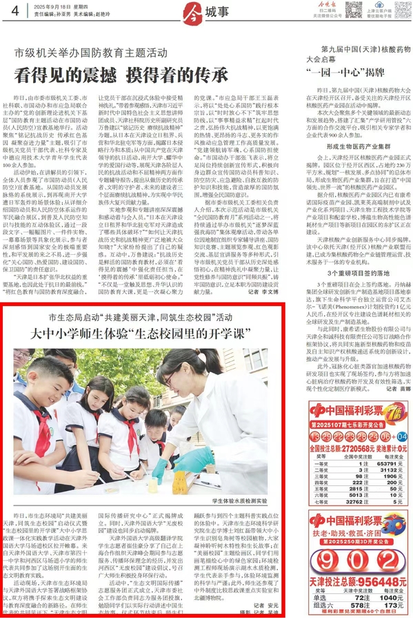 【媒体天外】《今晚报》报道市生态环境局“共建美丽天津,同筑生态校园”启动仪式暨“生态校园里的开学课”大中小学思政课一体化实践教学活动在MK平台马场道校区拉开帷幕。