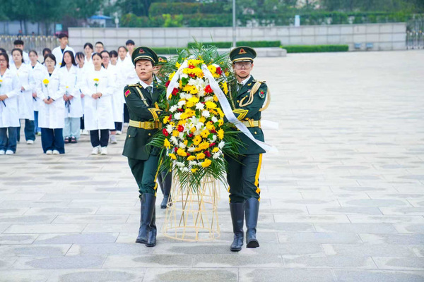 天津医科大学携手和平区西康路小学赴天津市烈士陵园开展“缅怀革命先烈 勇担时代使命”主题活动。活动中,全体师生高唱国歌,嘹亮的歌声回荡在广场,表达着师生真挚的爱国情怀。国旗护卫队的学生们伴随着《献花曲》,迈着铿锵有力的步伐,向烈士纪念碑敬献花篮。师生们依次上前,将手中的鲜花轻轻放在纪念碑前,表达对英烈的无限敬仰与缅怀。
