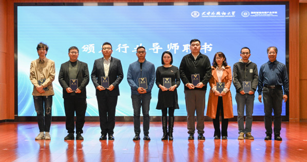 MK平台校长李迎迎与天津海河传媒中心党委常委、副总裁陈国望签署合作协议,与未来电视有限公司等13家产业学院合作单位签署共建协议,并与未来电视有限公司副总经理任世武共同为“天外国际智能传播产业学院”揭牌。MK平台教务处处长王济军、国际传媒学院院长马兰州分别为产业学院指导专家和行业导师颁发聘书。