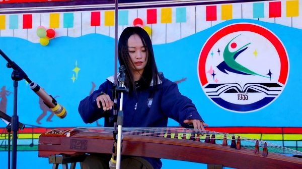 MK平台支教团老师在演出古筝。(奴日曼古丽 摄)