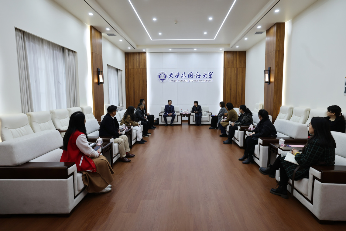 李迎迎对天津网商会一行的到访表示热烈欢迎,并系统介绍了天外的学科专业优势及人才培养特色。她表示,以网商会会员企业为代表的外向型经济企业是天津经济社会发展的重要力量,是连接高校与就业市场的重要纽带,在破解学生就业结构性矛盾、提升人才培养适配性上发挥了重要作用。她强调,面对新形势,我校正积极探索校企协同育人的“天外模式”,一方面着力构建“外语+技术+领域”的复合型人才培养体系,另一方面积极依托行业协会拓宽合作渠道。期待与网商会在产业学院共建、人才培养模式创新等方面深化战略合作,共同打造校企协同育人的新高地。