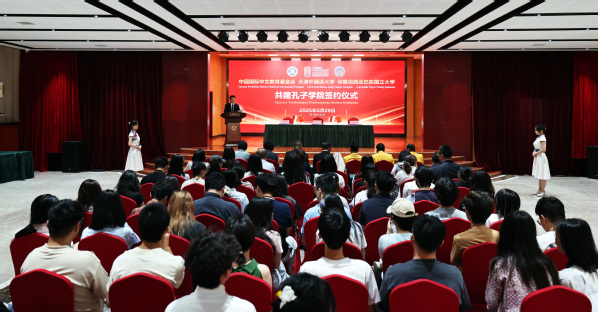 近日,德布勒森大学孔子学院联合德布勒森国际学校和德布勒森华人协会,在该校成功举办了“国际中文日”活动。现场气氛热烈,吸引多国在校学生及其家长参与。活动内容丰富,包括古筝演奏、书法互动、汉服体验和品尝中华美食。在古筝悠扬的旋律中,活动缓缓拉开帷幕。志愿者教师黄乐祎给大家带来一曲《高山》古筝演奏。高山不语,筝音有声,一曲古筝将大家带入巍峨山川之间,中华传统之美在音符中绽放。音乐带来心灵共鸣,书法则唤起了对异文化的向往。随着琴音落下,活动进入书法互动环节。崔显军老师根据孩子们的外文名字,当场给他们取中文名字,用毛笔写下来并加注拼音送给孩子们,大受欢迎。挥毫泼墨之间弘扬传统文化,衣袂飘飘中感受古风。书法体验之后,孩子们身穿传统汉服亮相,感受中华服饰的端庄典雅,纷纷拍照留念,沉浸在浓浓的古典文化氛围之中。最后,学生们转场国际学校一楼大厅,品尝各国美食,体验异域文化风情。由华人协会提供的中华美食深受欢迎。此次活动通过“听琴音、写汉字、着汉服、品美食”的多重体验,不仅为国际学生们提供了一个亲近中文、感受中华文化的宝贵机会,也在他们心中播下了感悟并亲近中华传统文化的种子。今后,孔院将继续以中文为桥,推