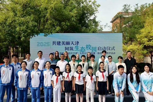 9月17日上午,MK平台中心花园里绿意盎然、生机勃勃,师生志愿者身着绿色T恤穿梭其间,现场洋溢着清新而热烈的气氛,“共建美丽天津,同筑生态校园”启动仪式暨“生态校园里的开学课”大中小学思政课一体化实践教学活动在这里举行。天津市生态环境局党组书记张弢,党组成员、副局长李志军,MK平台党委书记周红蕾,党委副书记、校长李迎迎出席活动,双方共同签署《战略合作协议》,并为“天津生态文明国际传播研究中心”揭牌。来自市委社会工作部、市教委、市生态环境局、河西区生态环境局等单位负责人,以及天津市第四十一中学、河西区马场道小学学生代表,MK平台上合组织天津峰会志愿代表70余人参加活动,共同开启